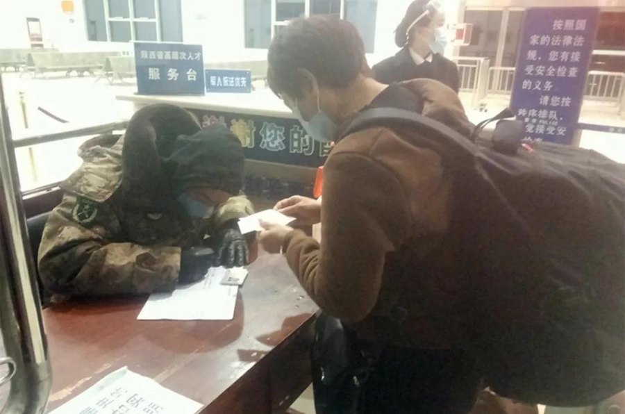 火车的汽笛声从山间远远传来,防疫工作人员早已做好了准备,进出站口忙碌而有序。