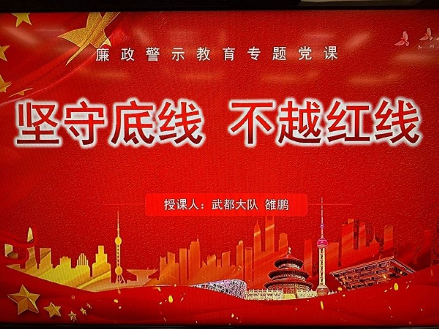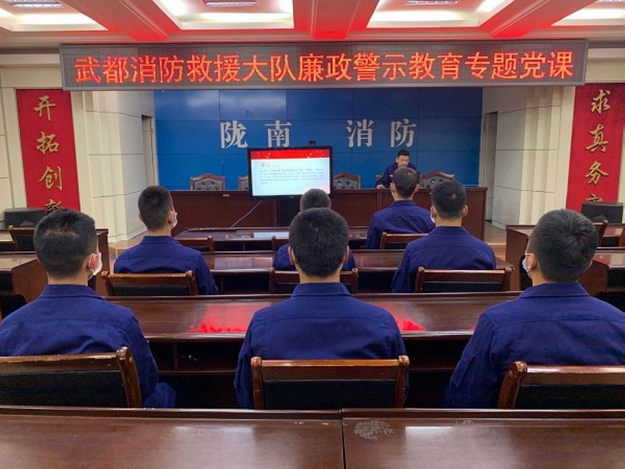 为全面贯彻落实部局、总队、支队“警示教育周”部署要求,扎实做好以案示警、以案促改、以案抓建工作,4月22日上午,武都消防救援大队组织全体指战员开展廉政警示教育专题党课。副政治教导员雒鹏组织授课。