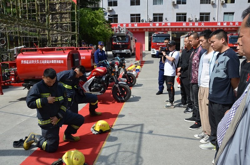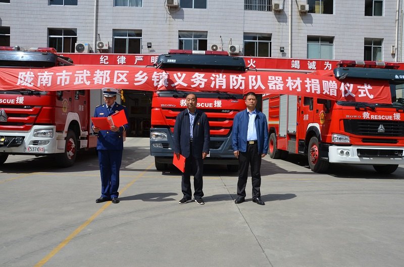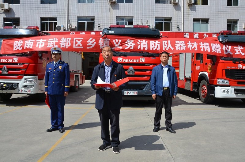 4月29日,陇南市武都区举行乡镇义务消防队器材配备捐赠仪式。陇南市政协办公室调研员、武都区区政府党组成员王必俭、武都区应急管理局副局长许永刚出席仪式,仪式由陇南市武都区消防救援大队副教导员雒鹏主持,大队全体指战员和2个乡镇、街道办负责人及义务消防队员参加了捐赠仪式。