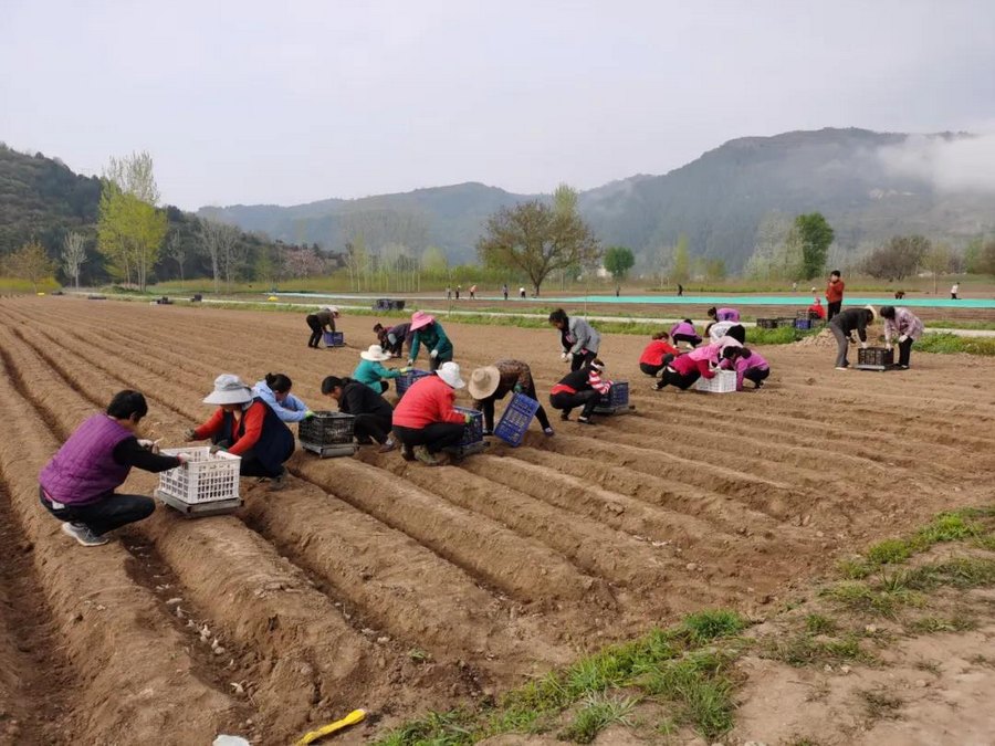 连日来,柳林镇江口村、庙坪村的田间地头,群众忙着抢抓农时,播种生姜。搬运姜种、铺设水管、挖沟种姜,覆盖地膜……一派生机勃勃的景象。