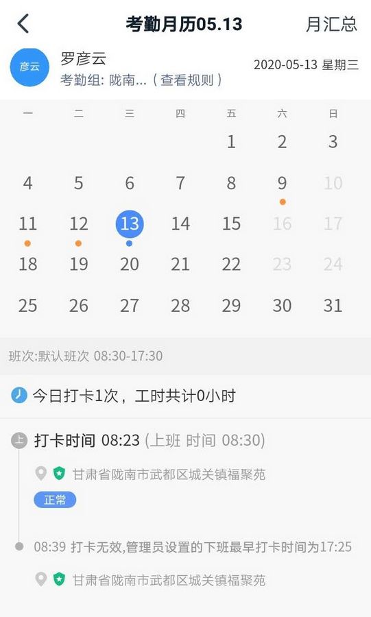 大队专门制定下发了具有较强操作性和针对性的考勤制度,对考勤时间、考勤细则等做出了详细的规定。实行专人维护管理,逐一录入登记每名消防文员的钉钉打卡考勤,在考勤系统中详细对个人信息进行设置,并对全体人员进行了应用培训,进一步规范一日生活制度落实,以信息化手段促进全体指战员,消防文员正规化建设。大队管理员每月对本单位人员考勤情况进行统计核对作为绩效考评依据,武都大队钉钉打卡考勤工作已全面展开。