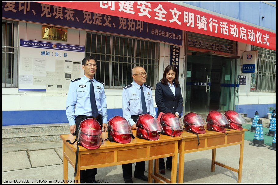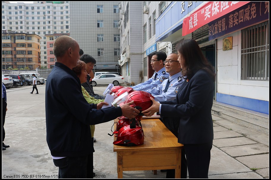 为进一步提升摩托车、电动自行车骑乘人员安全防护水平,减轻交通事故后果,保护骑乘人员生命安全。5月20日上午,成县公安局交警大队联合人保财险成县分公司在成县公安局交警大队院内开展“买保险送头盔”创建安全文明骑行秩序活动启动仪式。成县公安局交警大队教导员朱金升、副大队长杨宇东、人保财险成县分公司负责人成芳及大队民警、人保财险成县分公司工作人员和审验“五小车辆”群众等100余人参加了启动仪式。