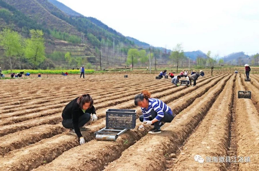 阡陌交通,春播籽种,“姜”来可期。近年来,在上级领导的关心支持下,江洛镇党委、政府瞄准生姜产业的发展前景和产业带富作用,根据市场导向和产业布局,细算投入账、产出账、效益账,引导徽县富邦农业产业发展有限公司和徽县土根种植农民专业合作社引进优良生姜品种,购置专用机械,高薪聘请专业技术人员,带动周边有种植意愿的群众,通过合作社提供姜种、技术指导、统一收购的方式,不断培育壮大了生姜产业。
