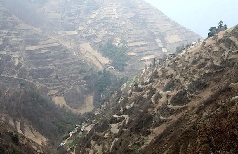 两河口镇桃坪村位于海拔2600多米的大山深处,有4个村民小组68户248人,桃坪、沟里头、升牙子、顺子坡4个自然村分散在一面面山坡上,要么是独户独居,要么是两三户聚居,最大的村落也不超过10户人。从沟底的桃坪到山梁处的升牙子,相对海拔近千米。这里高寒阴湿,山地贫瘠,交通不便,属于“一方水土难以养活一方人”的深度贫困村。全村耕地面积450亩,人均耕地面积仅1.6亩,全村68户人,全是土木结构的老房子,人畜共住,鸡犬相闻,卫生条件极差。“山在云里边、田是卧牛田”就是人们对这个村的真实描述。