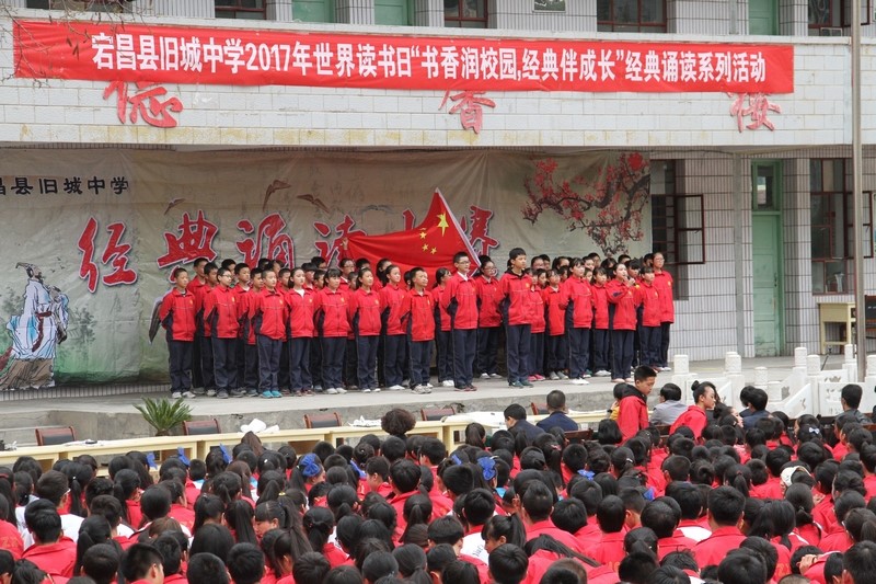 诵经典、育新人、助成长。为打造书香校园、提升办学品味,旧城中学积极创新诵读形式、精选诵读内容,在全校开展“大课间经典诵读”,引导学生以读写涵养品性,加深对中华优秀传统文化的了解和传承,牢记二十四字核心价值观,拓宽视野,放大格局,砥砺心志,让文明礼仪入眼入脑入心。以诵读+运动的形式即从诗经、楚辞、先秦诸子、汉赋、汉乐府、唐诗宋词等经典中挑选名篇名句由领诵老师用古代吟诵之法带领全体学生吟诵,诵读结束后进行校园韵律操和跑操活动。优美的诵读声、活泼有力的节奏、整齐的步伐、响亮的口号成为学校塑胶场地上的一道风景线。着力提升全体师生身体素质和思想文化素质并为打造书香校园提供了有力支撑。