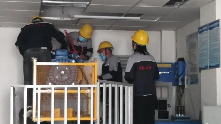 电梯维保人员火速到达现场,按照电梯救援要点及程序,先赶赴电梯机房判别故障电梯轿厢所处位置,完成切断总电源、松闸、盘车等救援操作,及时向现场应急指挥组报告操作进展情况。电梯维保人员熟练地用三角钥匙将电梯门打开,成功地将被困人员解救出来。随后,维保人员对电梯进行仔细检查,确认无异常情况后,电梯重新运行。整个预案演练过程紧张有序,大家齐心协力,遇险人员转危为安,达到了预期的效果。