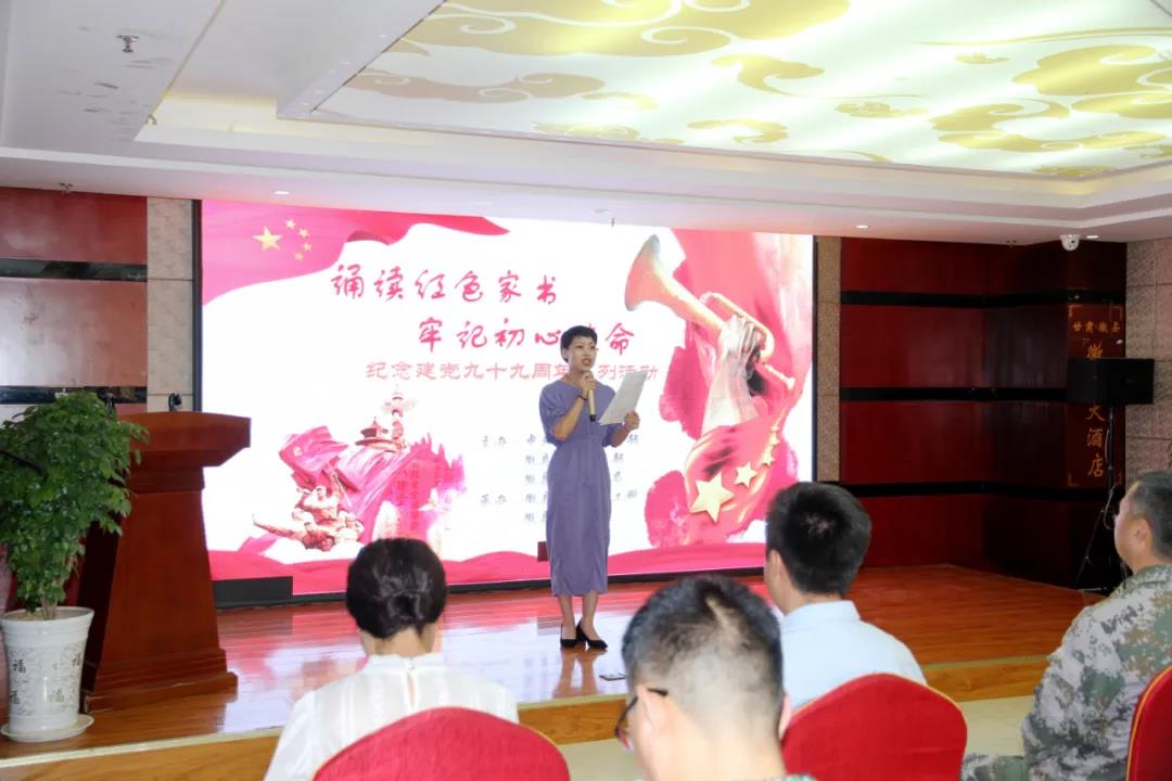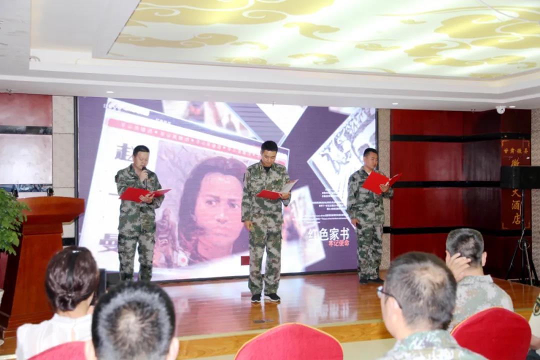 近日,陇南市徽县开展“诵读红色家书·牢记初心使命”庆祝建党九十九周年系列活动。县委常委、县人武部政委陶辉祥,人武部部长刘继军及县退役军人事务局、县图书馆、各乡镇武装部负责人和县内朗诵爱好者们参加活动。