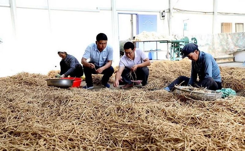 马过勤是村上的致富带头人,2017年11月创办了贾河乡大丰中药材农民专业合作社,兴建了中药材加工扶贫车间。合作社加工黄芪、干草、红芪、白条党、纹党、小茴香等中药材,加工量200多吨,每年产值约600万左右。