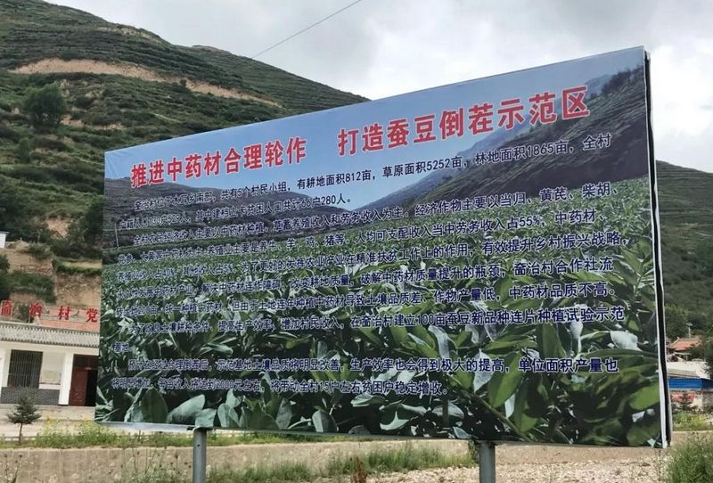 过了一会儿,雨慢慢的停了,天空也突然放晴,王广平饶有兴致,带着我们走进了他的“梦想地”——中药材蚕豆轮作倒茬试验示范基地。