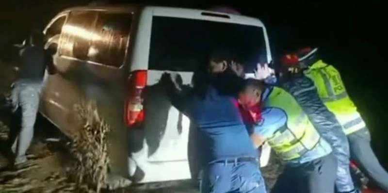 连续暴雨突袭,沙湾、两河口等乡镇部分路段发生山洪、泥石流、山体滑坡等险情,导致国省道行车受阻、交通堵塞。宕昌县公安局交警大队民警和辅警顾不上大雨湿身,卷起裤腿赤脚在泥水中进行现场交通疏导,帮助遇困车辆清理淤泥,脱离险境。