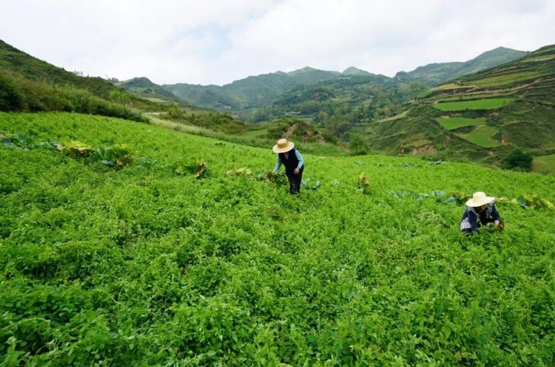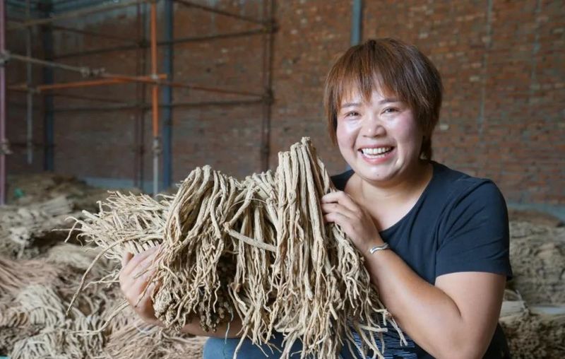 胡玉玲家在宕昌县好梯乡苟家院村,这里群山环抱,高山峻岭,交通不便,气候寒冷湿润,适合中药材党参、大黄、当归的种植。穷则思变,2018年,胡玉玲成立了好梯乡百草源种植养殖合作社,注册了商标,有社员28户。按照合作社+贫困户+电商+种植基地的模式,开发特色网货中草药产品四类。2019年合作社流转当地农户土地(承包式经营)200余亩,用于种植本地药材,喜获丰收。同时收购加工当地农户党参、大黄等中药材120余吨,当年通过阿里巴巴、一亩田、淘宝等多种网络销售平台线上销售额达到280多万,线下销售1000多万元,并在县乡有关部门的帮助下与多家药企签订长期供货协议,为今后的销售打下了坚实的基础。在药材加工过程中,合作社优先雇佣当地贫困户,在合作社的带动下,苟家院及周边村的种植户中药材收入占到农户总收入的40%以上。