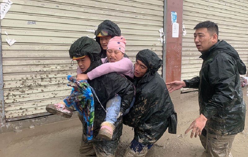 距被困人员1公里处,泥石流已将道路损毁,消防车辆已无法前行,大队指战员随即携带救生器材徒步赶往被困人员地点,此时暴雨还在持续,泥石流还在继续,已漫过指战员大腿。艰难到达现场后,发现被困人员为1名婴儿、3名儿童、2名老人、1名产妇、1名男子共8人。大队指挥员下令先将孩子和老人转移,再转移青壮年。武都大队指战员们将自己的抢险救援头盔摘下戴在孩子头上,背起孩子踏着齐腰的泥石流快速撤离,此时山中如雷鸣般的泥石流还在不断向下流。经过1小时紧张的救援,救援人员趟过泥石流,利用背,抱,搀扶的方法成功将8名被困人员救出,顾不上休息的指战员们又踏上另一处救援之路。