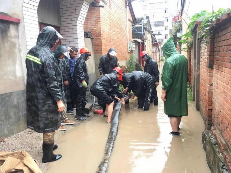 刘沟新村地属城乡边缘,地势低洼,接连的强暴雨导致沟渠排水不畅,导致积水占据整个巷道,镇党委委员、刘沟村党支部书记刘辉光在得到消息后,在及时汇报镇党委、政府的同时,立即带领救援小分队展开自救,安排抢险人员打开路边所有的排水井及排水口,开掘水道,利用水泵抽出积水,使灾情得以缓解。
