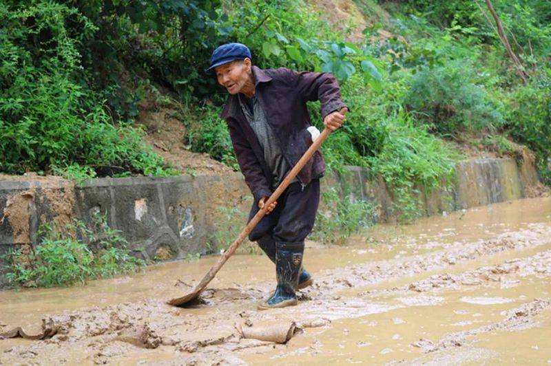 “她都快80多岁了,让她下雨天不要到处跑,她答应了,但这次自救他还是不顾家人的反对,偷偷跑出去帮忙了……”。嘉陵镇王垭村文书指着一位白发苍苍佝偻着腰正在清淤的老人说道。
