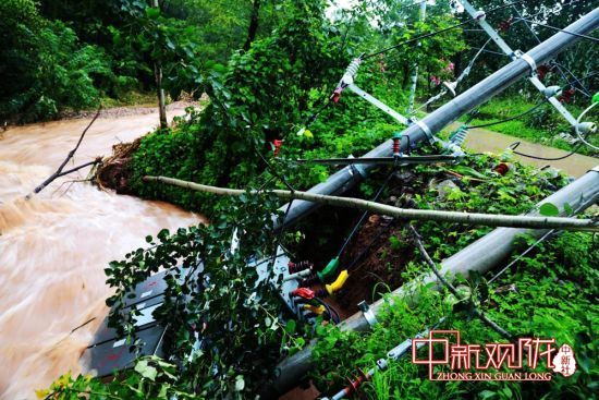 图为8月17日,甘肃省陇南市成县陈院镇卢沟村因洪水摧毁的电力设施。
