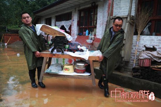 图为8月17日,成县二郎乡庄子村干部群众正在转移受灾财产。