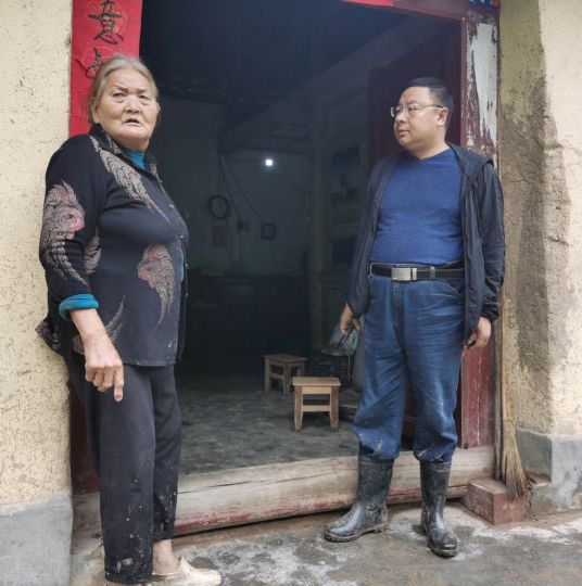 周会桃的母亲还拿出暴雨打落的苹果给他吃,腿脚不便的老人为了让他放心她目前的生活,怕他回去后给她在外务工的女儿打电话通报她的困境,硬是拉着帮扶队员的手查看她蒸了一大锅的馍馍和盛满大小塑料桶的房檐水。