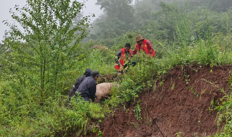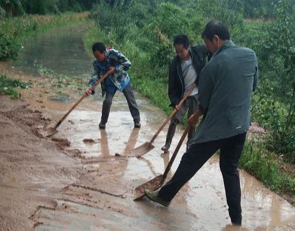 李家山村一处入村道路出现塌方,正在村里查看情况的第一书记马东海得知情况后,立即组织队员们前往疏通道路,奋战一个多小时后,硬生生用双手清出一条通行道路,并加固了护坡。