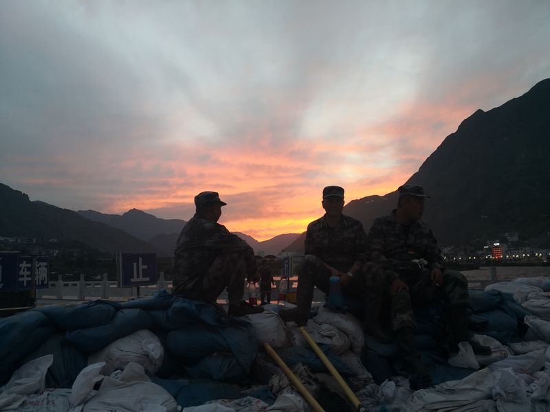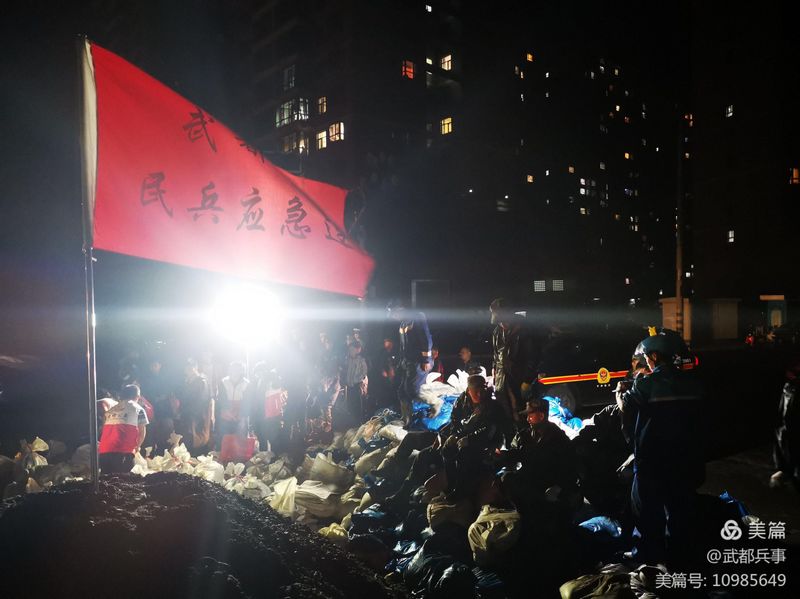 8月18日凌晨3时许,受强降雨影响,白龙江支流多儿河旺藏镇班藏村以北100米处迭部九公路二跨河涵洞堵塞形成堰塞湖。随着流量不断增大,堰塞顶上坝缺口逐渐增大,洪水即将流经武都区境内。17时,武都区人武部接区抗洪救灾指挥部民兵,带领民兵应急连50名民兵赶往大堡桥装填沙袋,加固堤坝,等待洪峰到来,采取紧急措施。这是武都民兵坚守岗位,连续奋战的第二天。