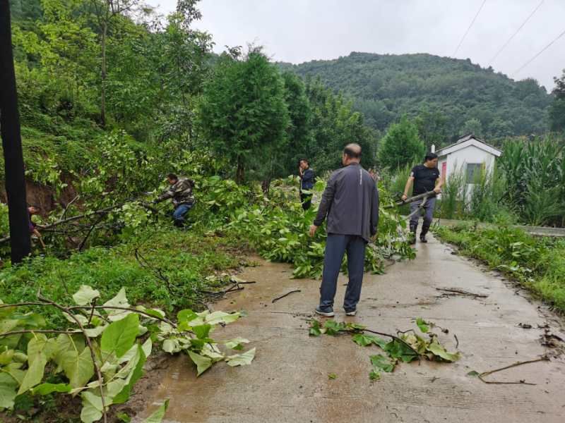 凌晨一点,一处树木倒斜,随时会危及农户房屋,张忠打着手电筒,冒着大雨,带领村社干部忙了整整两个小时,终于清理结束,消除了隐患。