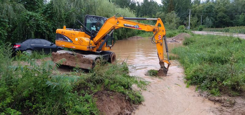 随后,他又一刻不停赶往坐落于西柳村的康正牧业公司门口疏通被堵渠道。之后紧接着赶往吕坝村。 期间,张寒斌接到镇村干部多个来电,纷纷向其求援。后经西柳村高支书协调,他半路掉头,又折返去本村因滑坡造成道路堵塞较重的一天门。一两个小时的作业基本恢复路面通行后,他才再次开挖机前往吕坝。 十天高速吕坝段钢架桥下排洪渠道被堵,洪水四处满溢,附近农田被淹,鱼池冲毁…群众救灾心切,抢险工作迫在眉睫。 又是一个多小时的连续作业。支伏路红川段是成县至徽县的重要通道,沿途几处滑坡、路面塌陷,严重造成行车阻碍。结束吕坝受灾点清淤,张寒斌没有多喘口气,直驾挖机赶到该路段,逐个进行清理。 时间已至晚饭饭点之后,尽管一天没有进食进水,也许是高强度作业的精神过度紧张,抑或是饿过了时,张寒斌并没有感到明显的饥饿。 晚7时许,整个路段全部疏通,周边也暂无需紧急处置的受灾点,张寒斌也再未接到求援电话和抢险安排,因雨夜幕提早降临,张寒斌才只身返回自己工地。放好挖机,回家随便吃了口东西,又开车飞速赶往县城,去接滞留医院的妻子。 回到家,张寒斌总算可以缓缓劲了,他这才顿然感到周身散发着酸困。 当夜,因雨,村里的几个好友都赋闲在家,他们晚上组局玩牌,叫张寒斌参加。“考虑到万一要有灾情处置,就得随时出发”。为了保证能够及时出动抢险机械,张寒斌便一口回绝了朋友的邀约,静待家中。 那晚,张寒斌最终未接到抢险命令,但他一直都处于随时待命的浅睡眠状态。 13日一早,张寒斌又满血复活。因前夜机械出了点小状况,为不误事,起了个大早,嚼了点干馍,便赶去修理挖机。 上午10时,他又投入新一轮抢险救援中,一日未归。 14至17日,全县持续大到暴雨,被雨水浸透的地质暗藏隐患。张寒斌在多个求援和协调电话中,奔走在全镇各个受灾点之间。哪里有灾情,哪里就有他的身影。清淤过程随时都有新的泥石流、滑坡发生,多年挖机作业的张寒斌深谙此理,但军人出身的他沉着应对,不急不躁,风雨无阻,毫不畏惧,把风险淡然封存内心,给乡亲们希望和重生。 这期间,对张寒斌而言,是一日日挑战平日连续作业时长极限的劳动和一个个没迟没早的不归夜,很支持他工作的妻子甚至都不知道他有几个夜晚是否回过家中。即便近在咫尺,也难见人面,妻子只好悄悄地在电话中叮嘱他,“多注意安全”。 8月18日,记者在红川镇西柳、东槐、杨河、二条岭几村受灾现场采访,在向镇村领导了解当地救灾情况时,无意知晓了张寒斌的抢险故事,因其一直在其它受灾点进行机械操作,最终未能与其本人谋面。 但想象中,他很高大。 19日上午,记者电话采访他时,因其正在灾情现场进行机械操作而作罢。后趁午后小憩的间隙再次和他取得联系,并作了简单攀谈。