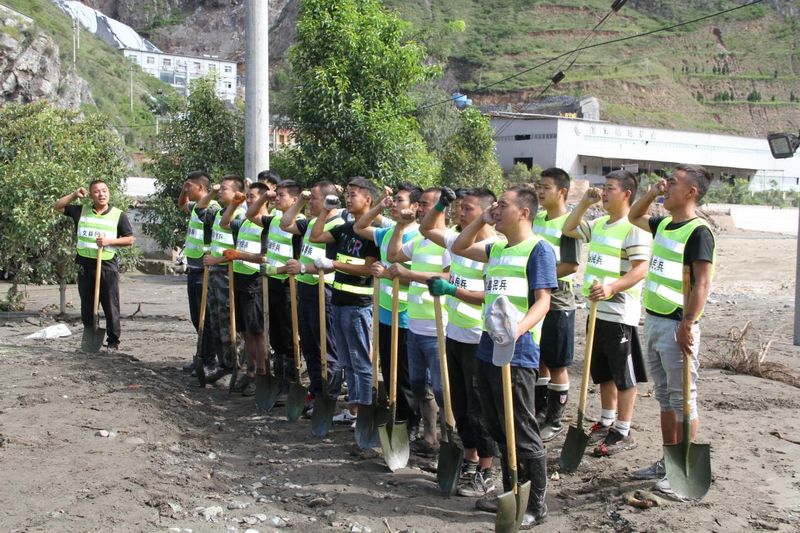 战鼓崔征,文县人武部迅速响应,迅速动员民兵、退伍军人和青壮年开展抢险救灾工作。300多名退伍老兵、青年志愿者迅速集结奔赴到各险情一线。来自文县鹄衣坝的退伍军人张伟就是其中一员,2005年退伍后,他经营着一家货物运输公司,此次暴洪泥石流灾害发生后,他第一时间来到文县人武部,请求归队参与救援工作。