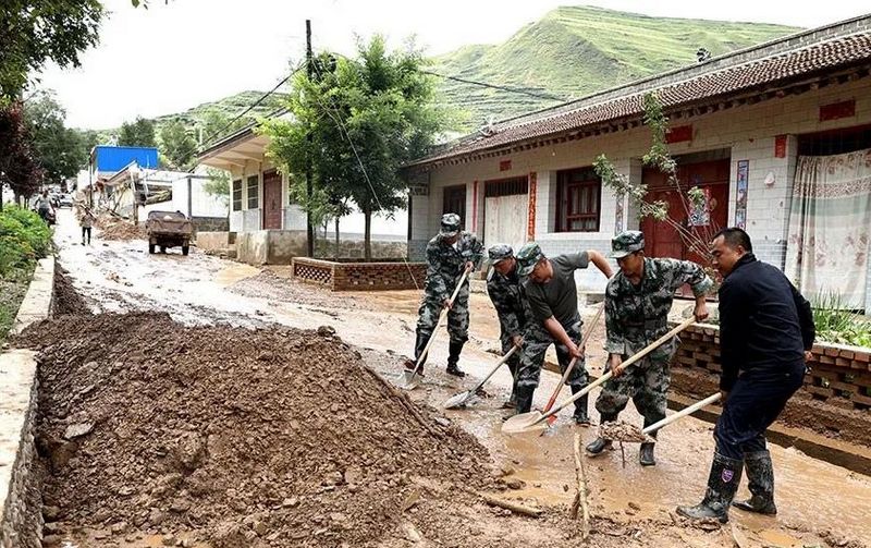 在全镇各个村,党旗猎猎,迎风飘扬。镇村社由1300多名党员干部、民兵、公益岗位、帮扶队员、志愿者组成的30个抢险突击队,分片分段,帮助受灾群众疏通水道,清铲淤泥、搬运物品、打扫清洁,疏通河道1600多米,疏通水渠1.2万米,清理路面8600米,清理淤泥沙3000多方。