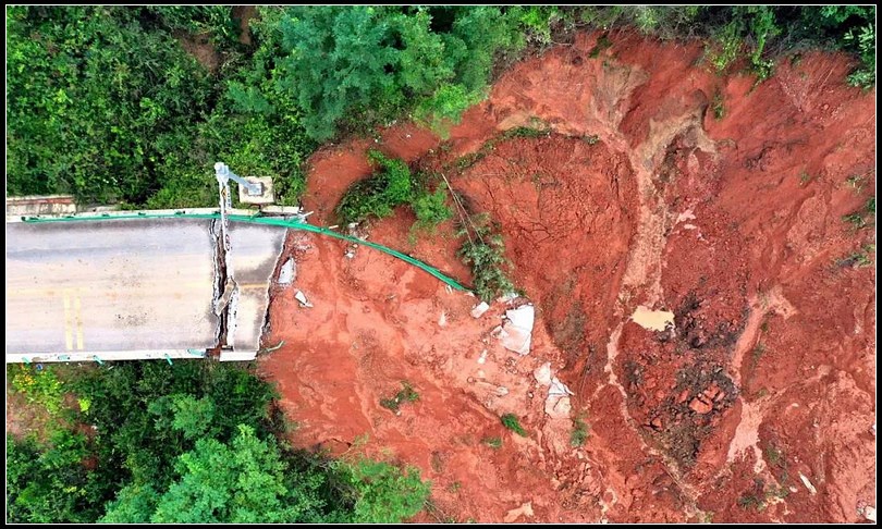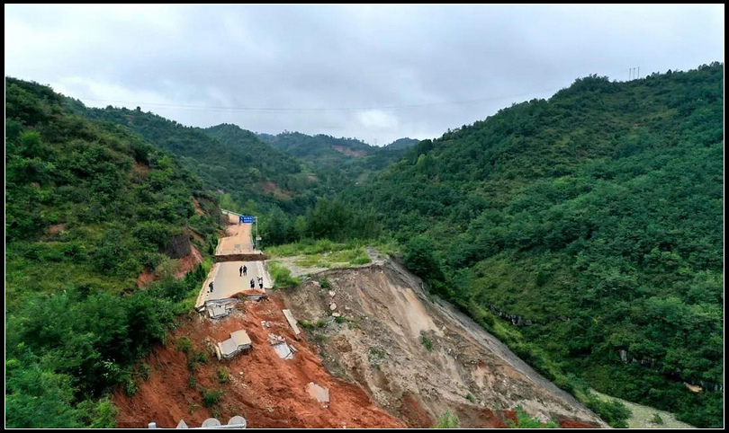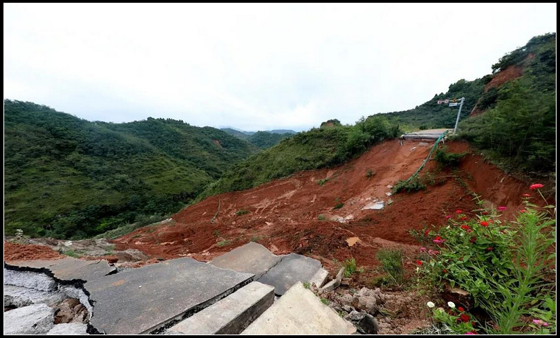 国道567草坝村路段出现大面积山体滑坡,造成公路严重跨塌