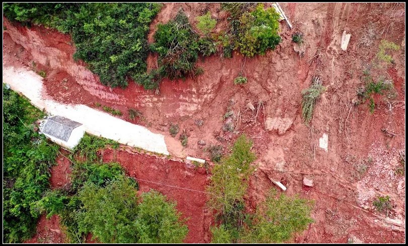 8月21日,暴雨初晴,洪灾之后的生产自救工作正在全县上下有条不紊地开展。记者在国道567草坝村路段看到,陇南公路段的工作人员正在忙碌着清淤除障,保障路面的畅通。距施工现场一公里外,就是被暴雨严重冲毁的道路,满目疮痍,触目惊心。垮塌后的路基造成山体滑坡,形成小型堰塞湖,严重影响着山下30多户群众的生命财产安全。