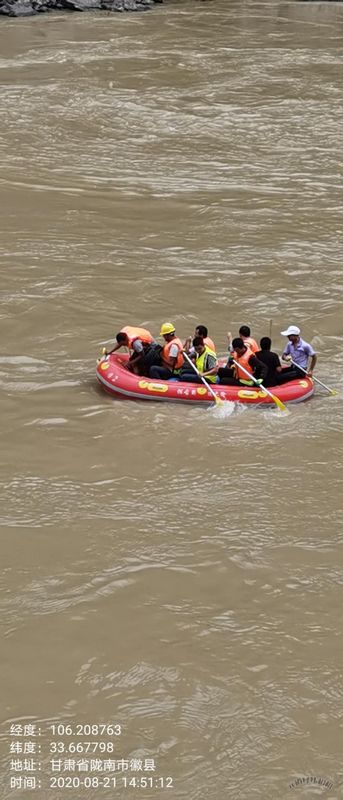 8月21日14时许,甘肃陇南徽县嘉陵江畔,中国电信陇南徽县分公司党员先锋队抢修虞关乡山岔村因暴洪灾害导致故障的4G基站时,因月亮峡高崖村吊桥冲毁受阻,技术负责人罗宏宇临时决定,租用嘉陵江大滩漂流公司的皮筏子,渡过嘉陵江进行抢修。在全体抢修队员近5个小时的努力下,当日19时40分,徽县最后一个中断的4G基站和光网宽带终于恢复通信。