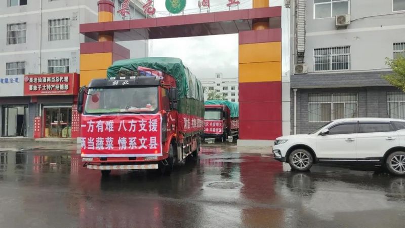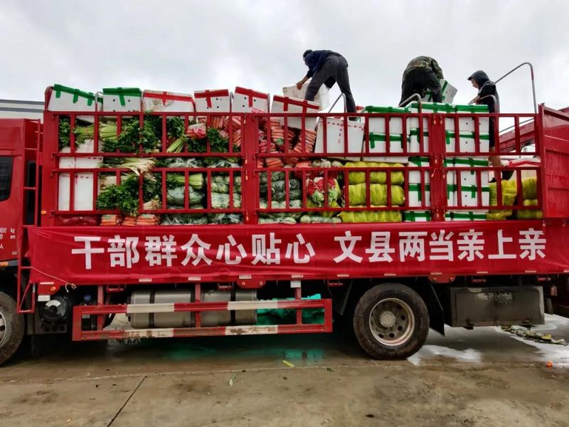 此次两当县捐赠文县各类新鲜蔬菜共计50666斤,其中胡萝卜3600斤,苞菜6050斤,白菜8060斤,青椒3788斤,葱1149斤,芹菜3109斤,有机菜花3500斤,西红柿2138斤,土豆7940斤,洋葱8950斤,线椒1860斤,茄子263斤,豇豆163斤,西葫芦96斤。这些蔬菜带着两当人民的深厚情谊,已发往文县。
