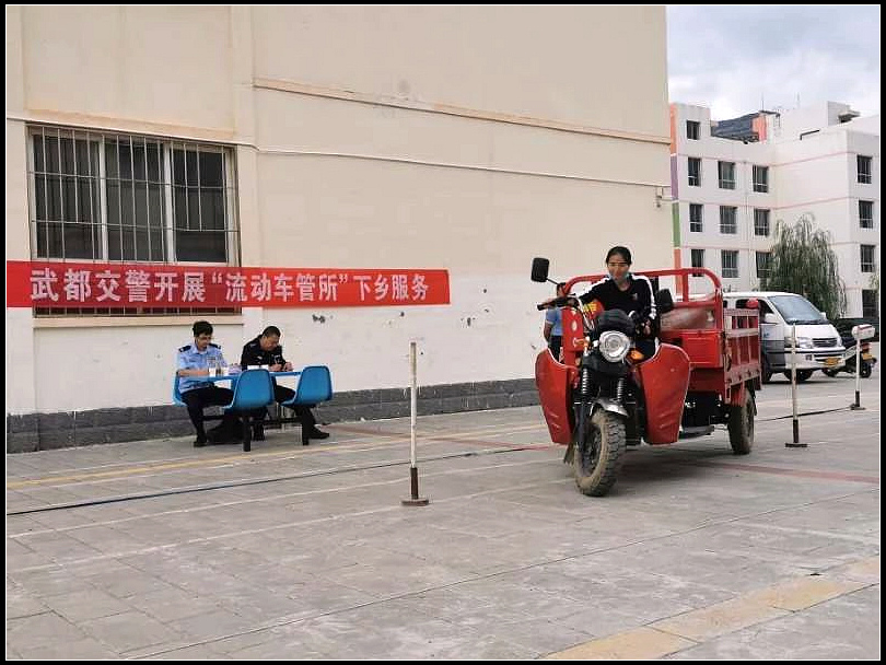 中国甘肃在线武都讯(通讯员王治)为深入推进公安交管“放管服”改革工作,进一步方便乡镇群众办理车驾管业务, 近日,陇南市武都区公安局交警大队车管所所长杨平带领车管民警,将车驾管业务延伸至乡镇,组建“送考下乡”小分队,利用节假日为边远群众提供交通安全知识培训、考试等便民服务,同时深入辖区带牌销售点开展走访检查,确保销售机动车辆产品合格。