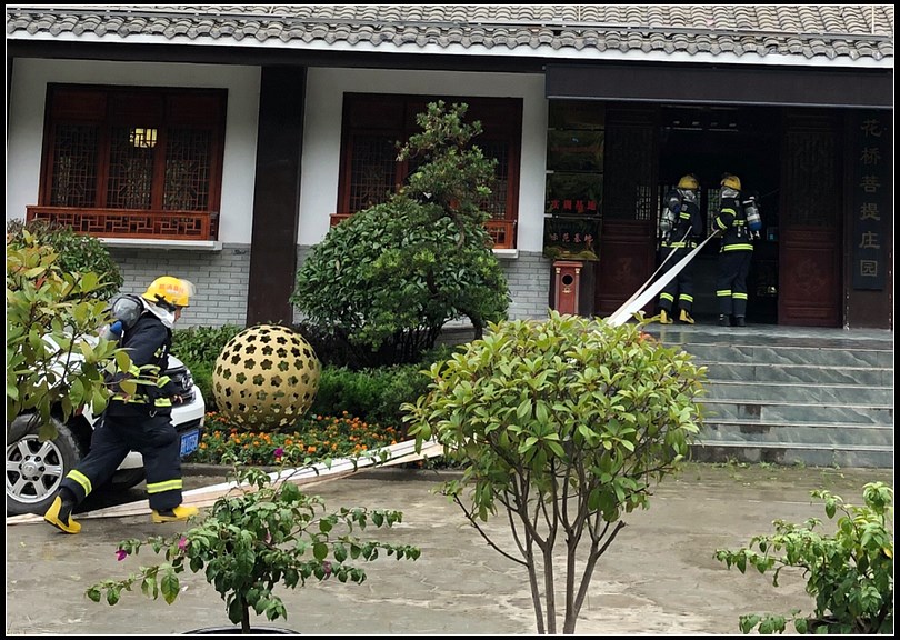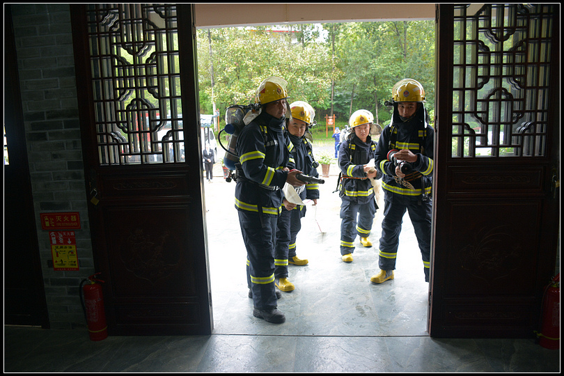 随后,消防大队和花桥村场所员共同开展了灭火救援实战演练。演练假设:2020年9月28日9时,康县消防救援大队接到报警称,长坝镇花桥游客接待中心1楼大厅突发火灾,有一人被困,情况十分危急。接到报警后,大队第一时间出动2车8人前往处置。9时48分,大队到达现场,指挥员根据现场侦查情况,立即下达了作战命令,各组作战人员接到命令后迅速展开。警戒组对现场实施警戒并疏散围观群众;灭火组单干线出2支水枪,1支水枪对准起火部位进行灭火,另外1支水枪进行冷却,掩护被困人员疏散。经过10多分钟的奋力扑救,大火被成功扑灭,整个演练圆满结束。