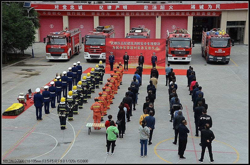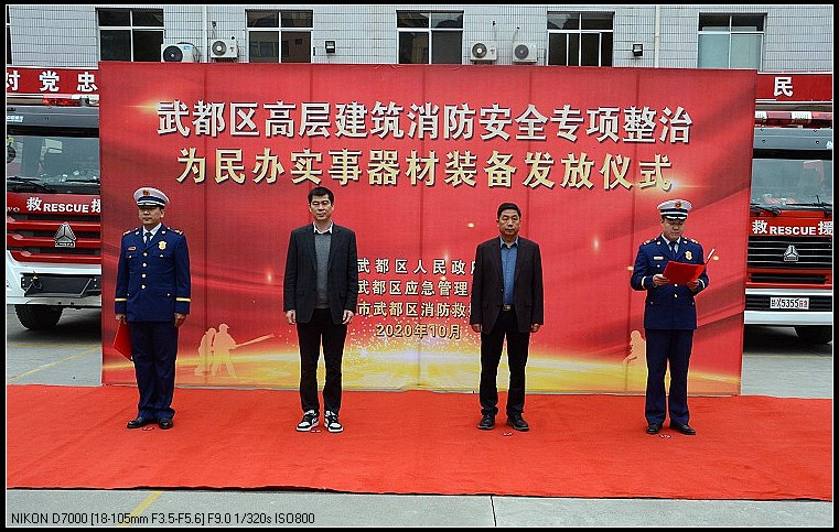 为大力提高高层建筑和高层住户的消防安全意识和火灾防控能力,落实为民办实事的具体要求,10月15日,武都区高层建筑消防安全专项整治为民办实事器材装备发放仪式在陇南市武都区消防救援大队隆重举行。武都区区委常委、常务副区长张建强、区应急局局长冶忠宏出席仪式,仪式由武都大队副教导员康富贵主持,大队全体指战员和辖区物业企业负责人、高层住户代表近百人参加了发放仪式。