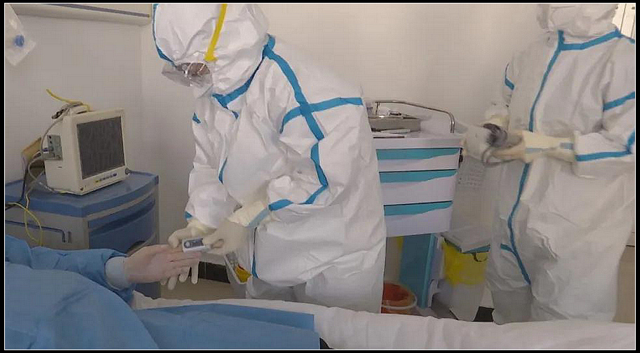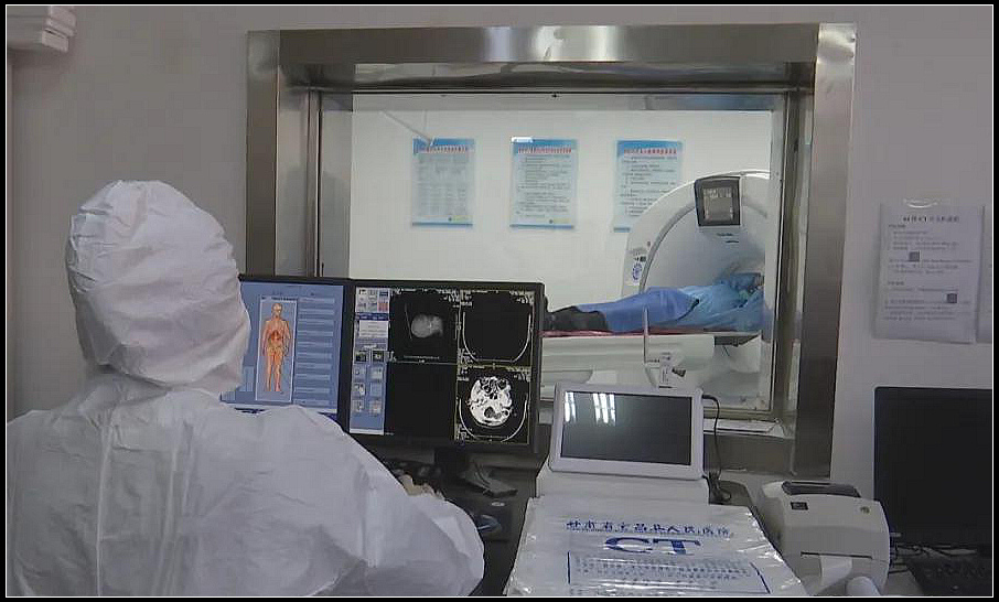 县人民医院和中医院模拟演练一位患者因“咳嗽、发热”到医院就诊,医护人员对该名“患者”进行登记、预检、核酸采样、DR排查、会诊,最后送至定点医院隔离治疗。