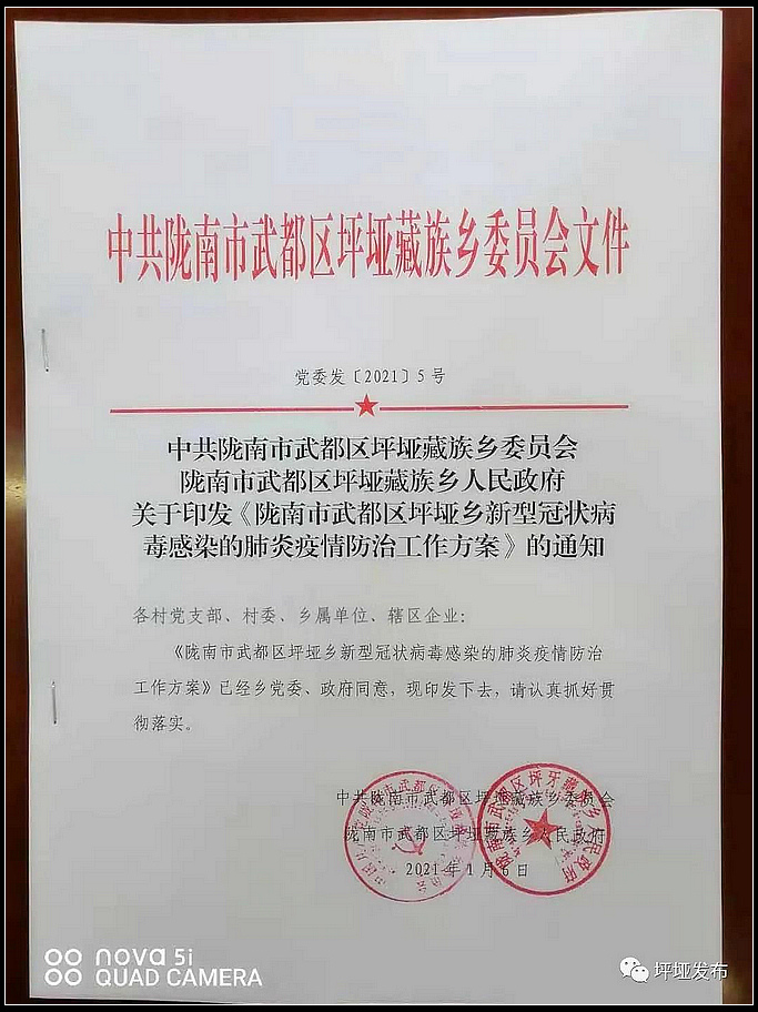 中国甘肃在线武都讯(通讯员王治 谈鼠军 杜路生)疫情就是命令,防控就是责任。武都区坪垭乡严格贯彻落实省、市、区疫情防控工作要求,立即安排,迅速行动,精细部署,抓细抓实,“七到位”筑牢疫情防控网。