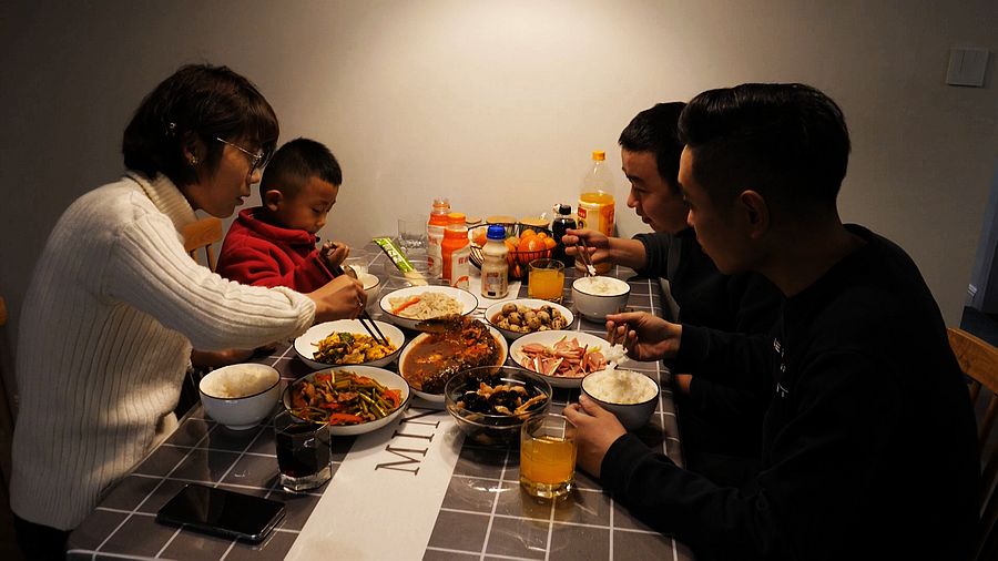 尽管眼神中满是对家的思念,但既然决定“就地过年”,过年的仪式感便不能缺,夫妻俩早早选购了各种年货,为在异乡的自己做了一桌“丰盛”的年夜饭,还通过视频的方式,向家人送去了新春的祝福。在他们看来,虽然不能团圆,但有了便捷的网络系统,通过视频聊天等方式,这个年同样会非常喜庆。