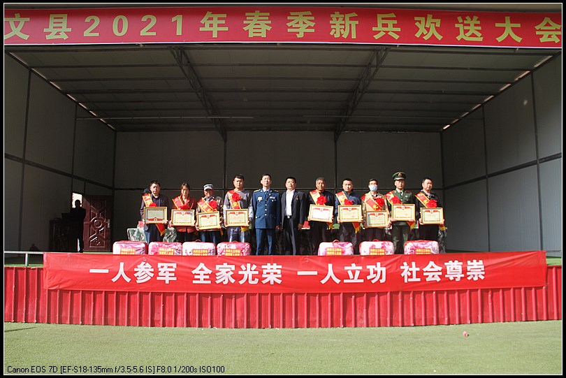 为激励广大新兵扎根军营,早立新功,9名荣立三等功现役军人亲属被请上主席台就座。新兵们纷纷表示要向荣立三等功老兵们学习,入伍后坚决做到听党指挥、团结战友,不怕吃苦、不怕受累、刻苦训练,为祖国的和平与安宁贡献力量,早日让喜报传回家乡。笔者了解到,文县人武部将欢送新兵与发放喜报结合起来,鼓舞激励今年新入伍的青年建功军营安心服役,同时达到宣传立功受奖人员的效果。
