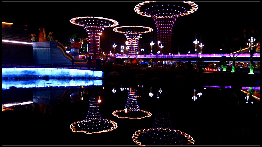 滨江生态湿地公园,园内奇石古树交相辉映,红花绿草争奇斗艳,“锦鲤桥”、白龙江廊桥夜晚灯火与江水相映,一步一景。武都以“绿满两岸,水系五城”为设计理念,沿白龙江打造的滨江生态景观长廊,如今已成为武都新的地标性景观。