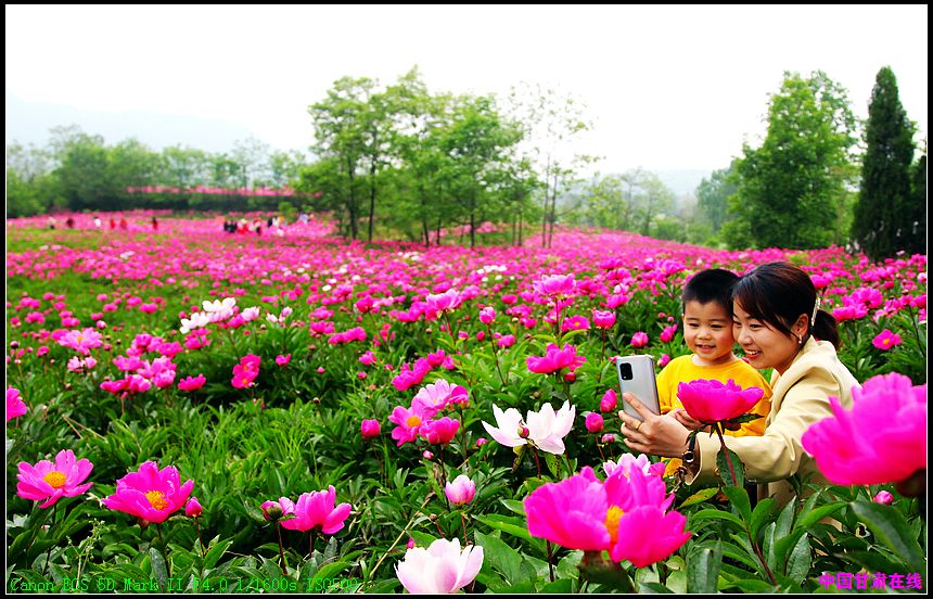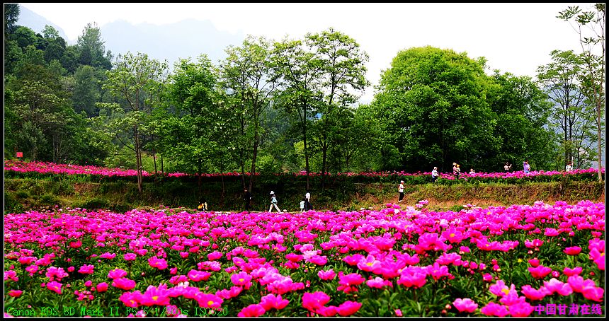 中国甘肃在线成县讯 (通讯员 陈海龙)“立夏三朝看芍药”。近日,在陇南市成县抛沙镇丰泉村华锐泽农林生态农民专业合作社示范园内,前来旅游观光的游客络绎不绝。游客置身芍药花海中与花合影,跟花争艳,欣赏着芍药花的千姿百态。一朵朵芍药绽开了娇羞的面庞,争奇斗艳,一簇簇、一片片,花团锦簇,在和煦的阳光中摇曳生姿,姹紫嫣红,令游客流连忘返。
