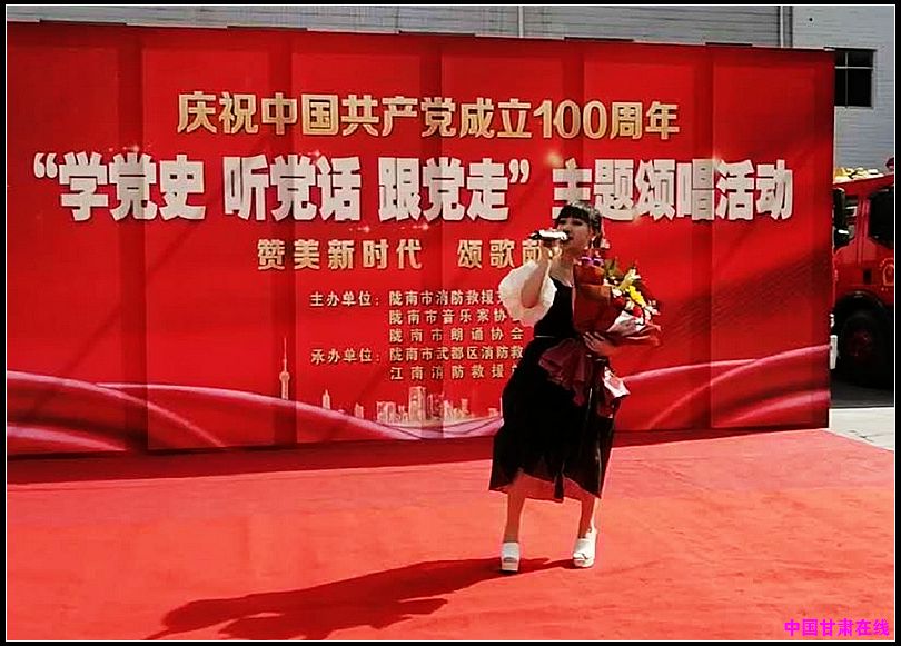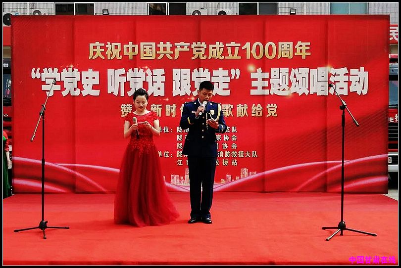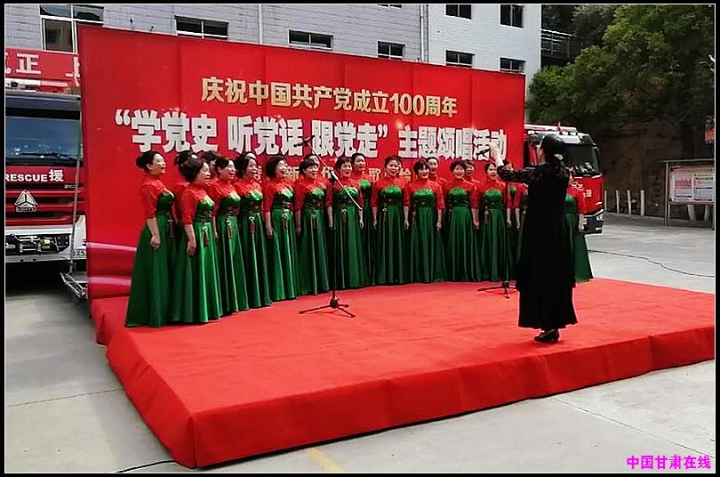 5月20日,由陇南市消防救援支队、陇南市音乐家协会、陇南市朗诵协会主办,陇南市武都区消防救援大队、江南消防救援站协办的赞美新时代、颂歌献给党——庆祝中国共产党成立100周年“学党史、听党话、跟党走”主题颂唱活动在武都大队隆重举行。陇南支队副政治委员廉政华、武都大队副大队长雒鹏、陇南市音乐家协会和朗诵协会相关领导、武都大队全体消防指战员及社会群众200余人参加活动。