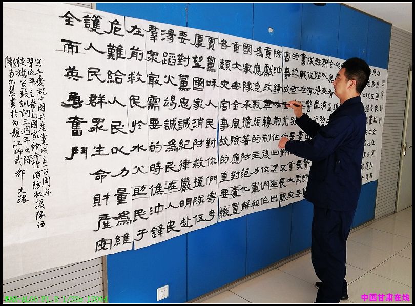 为进一步丰富党史学习教育成果、拓宽单位文化建设,武都区消防救援大队发挥文员自身优势,积极创作庆建党百年主题书法作品。