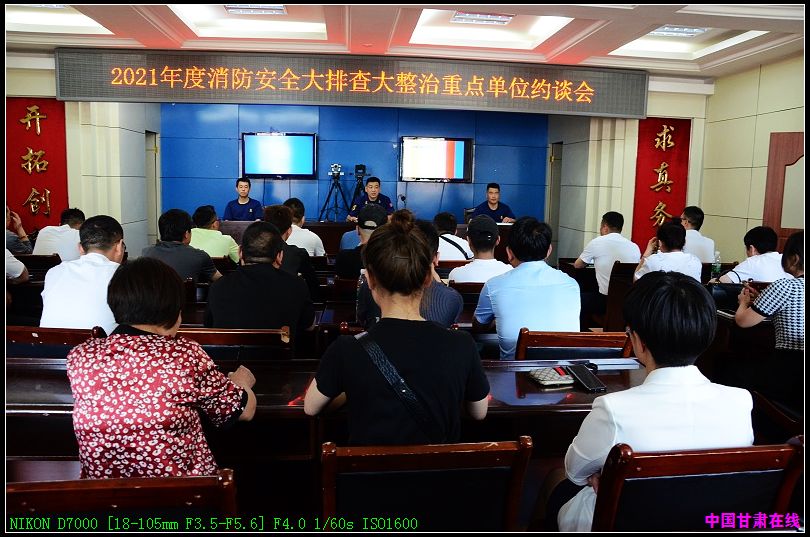 为深入贯彻落实省、市、区安全生产大排查大整治专项行动部署会议精神,根据大排查大整治专项行动方案要求,为进一步规范重点单位消防安全管理,督促社会单位落实消防安全主体责任,确保辖区消防安全形势稳定。近日,陇南市武都区消防救援大队召开2021年度大排查大整治专项行动重点单位约谈会。辖区重点单位120余名消防安全责任人、管理人参加会议。会议由武都大队副大队长雒鹏主持召开。