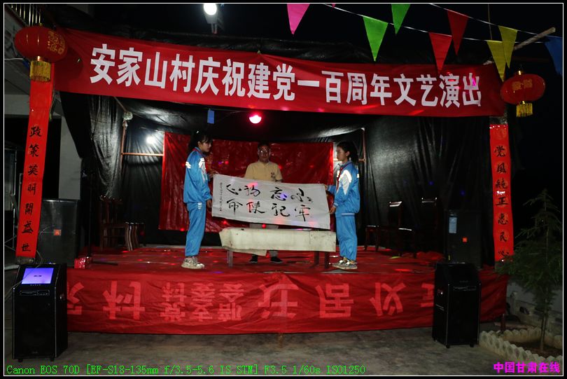 演出从观看安家山村的发展历程幻灯片中拉开序幕,通过声情并茂的解说和栩栩如生的纪实画面,把安家山村的发展展现的淋漓尽致。演出过程中,通过配乐朗诵、情景表演汉字书写、合唱《我们是共产主义接班人》、独唱《唱支山歌给党听》,秦腔传统剧目《二进宫》选段等10多个精彩纷呈的节目,表达了安家山村人民坚定不移听党话、感党恩、跟党走的浓烈情感。整场演出主题鲜明、内容丰富,演出结束时,全体演职人员高唱《歌唱祖国》,激昂有力的歌声表达了对党的无限热爱。