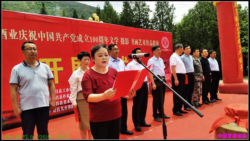 企业搭台,文艺唱戏。 6月30日上午,由县工信局、县文联,县文联作家协会、书法家协会、美术家协会、摄影家协会、影视家协会、诗词学会,九台春酒业联办的《宕昌九台春酒业庆祝中国共产党成立100周年文学摄影书画艺术联展》。