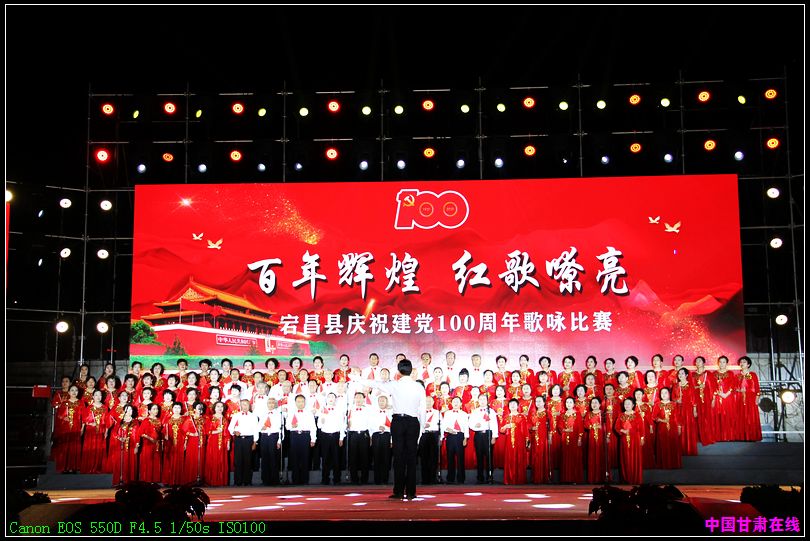 中国甘肃在线宕昌县 “一条大河波浪翻,风吹稻花香两岸……。近日,“百年辉煌 、红歌嘹亮”宕昌县庆祝建党100周年歌咏比赛在时代广场唱响。