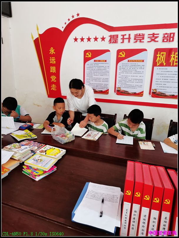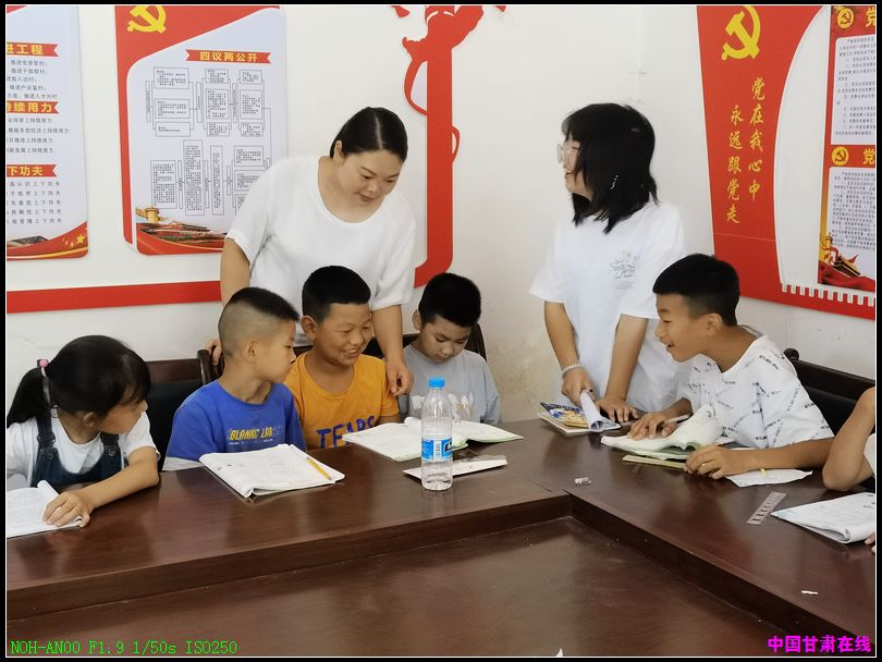 真心帮扶动真情,真情为民显真心。联系枫相乡磨坝村的武都区南山公园管理所驻磨坝村帮扶工作队员们在走访群众时了解到这一情况后,迅速召开工作会议,成立了由驻村帮扶工作队队长张永平任组长,刘彬、高桂艳、高芳娟、高瑞瑞为组员的暑假作业临时辅导班。“‘辅导员’们按照课程安排,把磨坝村家中无人辅导作业的孩子们召集到党群服务中心,根据孩子们的具体情况细心地一一辅导”