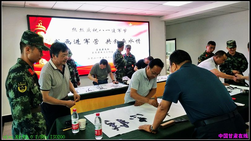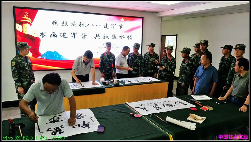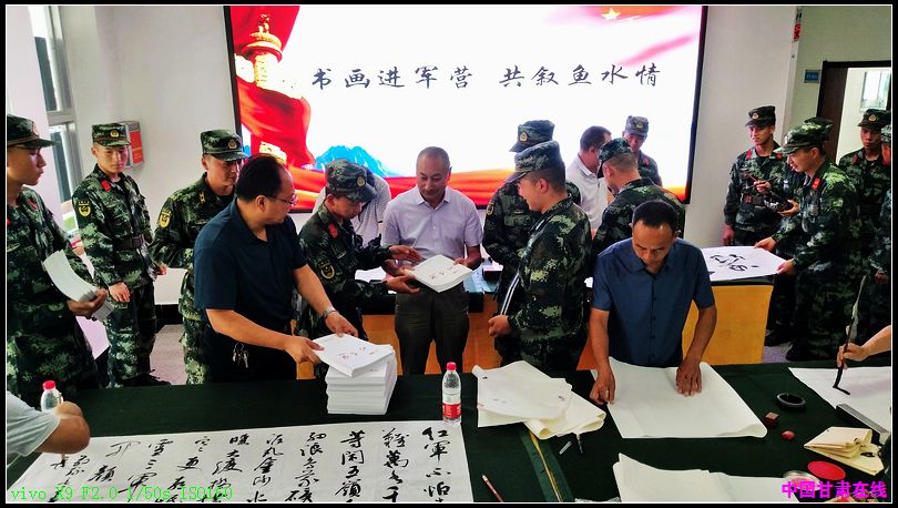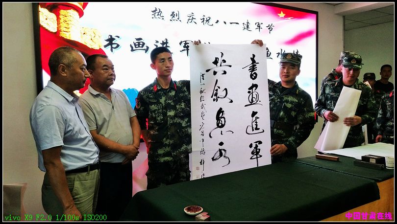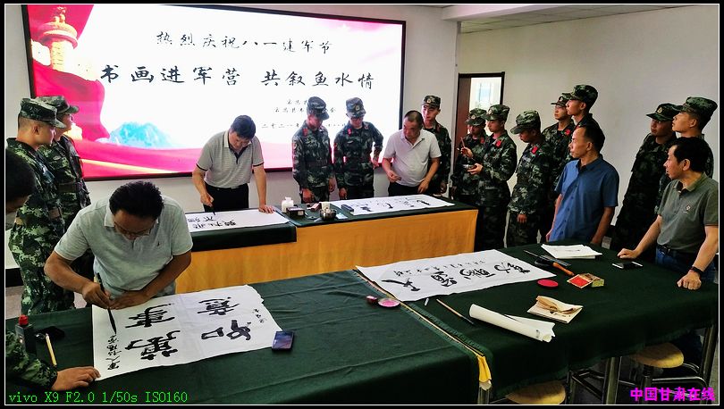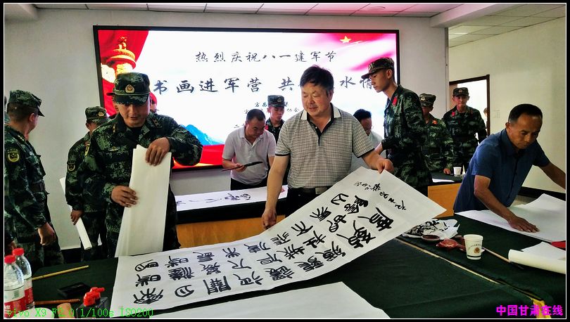 7月28日,宕昌县文联主席刘辉组织带领县内书法协会文艺志愿者开展“书法进军营 ,共叙鱼水情”捐赠慰问活动。一幅幅书法作品表达军爱民、民拥军的军民鱼水之情。