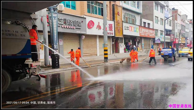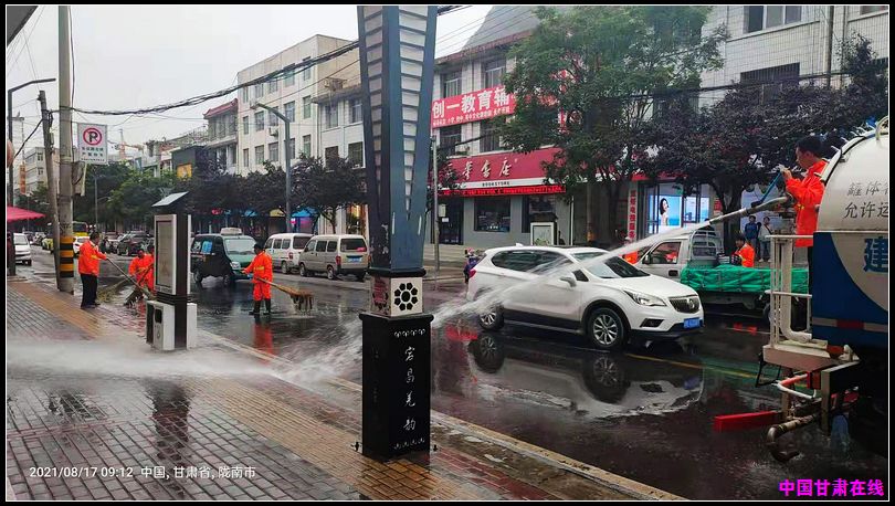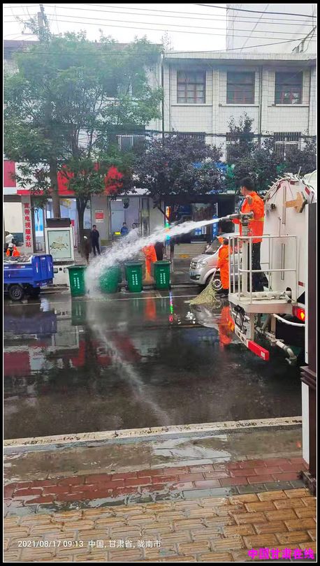 路面、人行道的痰渍,沿街餐饮店油污、下水道口乱倒的油污、流动摊贩遗留的油渍、废渣,汽车摩托车修理店洒到地上的机油,工地建设留下的“硬疤”……让城区原本干净的路面变得脏乱差,影响着官鹅沟国家五"A"级景区创建,而这些斑点污渍平常环卫工人通过清扫和洒水车冲洗只能冲淡污渍,无法从根本上彻底清除洁净。专项冲刷清洗行动中,环卫局、消防大队出动消防车2辆,辅工15人,并实行交警队辅助交通疏导管制。通过人工铲除、抛洒火碱去油污及高压冲洗等方式进行彻底清洗。同时,环卫工人发扬不怕苦累的精神,加班加点配合冲洗车,紧随其后用竹扫帚刷洗路面;针对污染严重的工会路口烧烤摊点、原物资局门口等顽渍路面,他们反复清扫,直到路面冲洗干净为止,经过环卫工人们紧张有序的人车配合作业,冲洗过的城区道路面貌焕然一新。