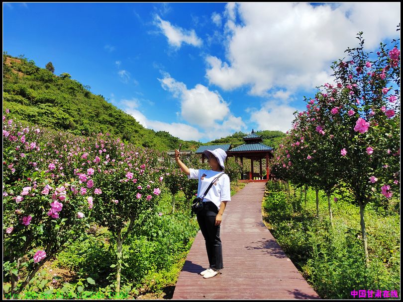 中国甘肃在线(通讯员 高琼 何方) 八月的金徽大地,秋风送爽,天朗气清,走进银杏树镇高坪村的漫山花海中,让人仿佛置身于世外桃源,成片的紫荆花和木槿花缀满枝头,在阳光的照射下,显得格外耀眼。
